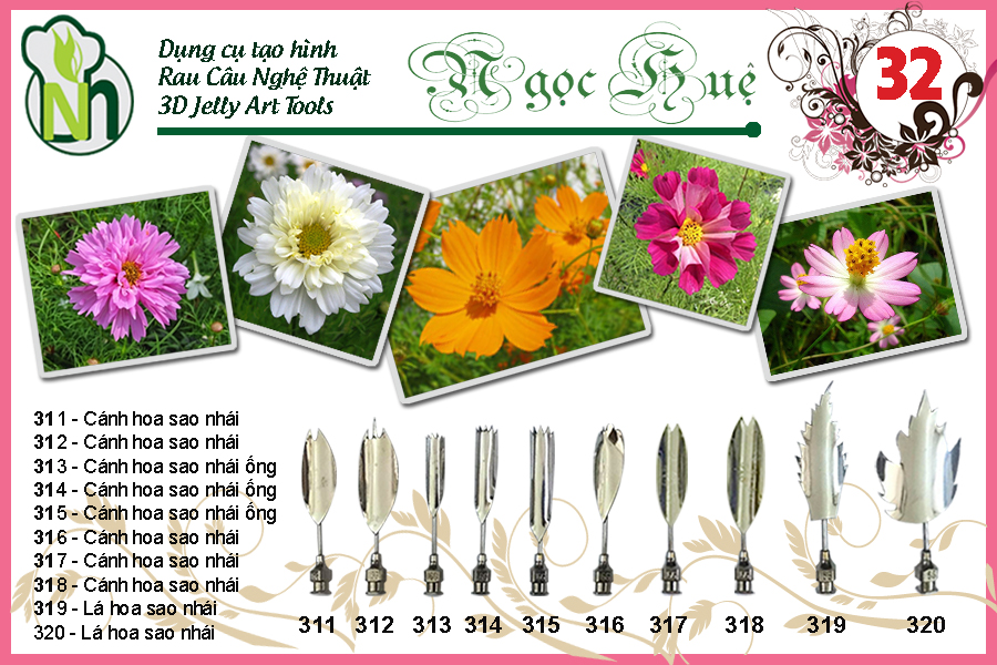+ Mẫu kim trang nhã, tinh tế, dễ phối màu, dễ lên các bánh tiệc. Kim được cô giáo Ngọc Huệ sáng tác dựa trên ý tưởng kim 3d từ các nước Châu Âu, nên thiết kế hài hòa, sang trọng. Về sau, nhiều bạn xuất thân là dân buôn đã tự ý sáng tác và cho ra đời kim 3d phỏng theo hoa lá trong sân vườn, rất kém sang, và khi phối màu sẽ rất lòe loẹt.