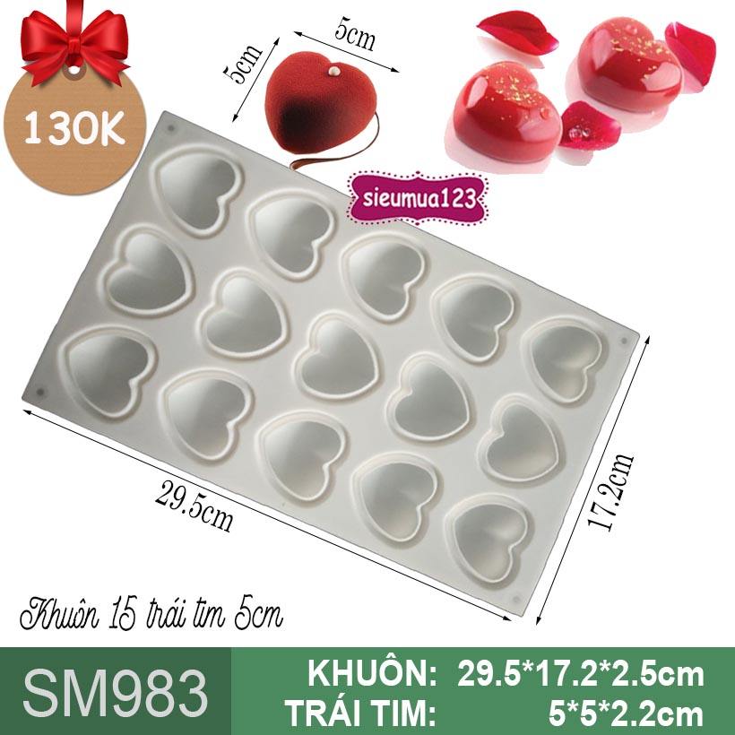 KHUÔN SILICON LÀM BÁNH MOUSSE 15 TRÁI TIM 5CM