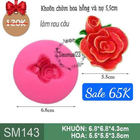 KHUÔN HOA HỒNG KÈM NỤ CÓ THỂ LÊN CÁC BÁNH TIỆC 4D