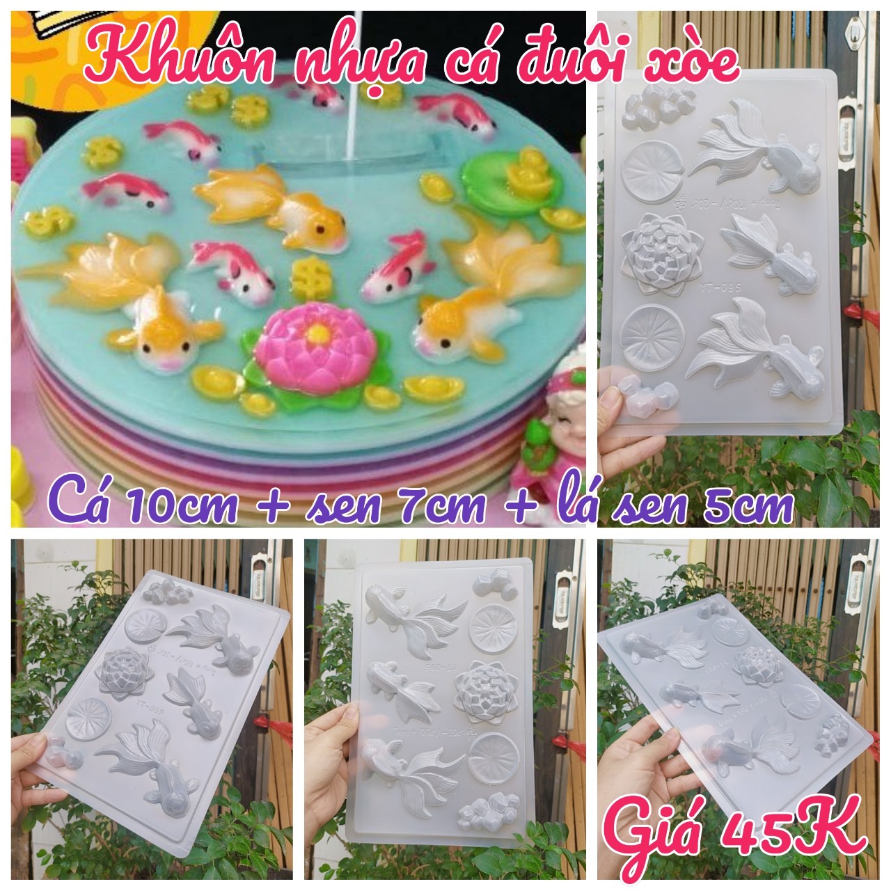Khuôn nhựa mỏng cá đuôi xòe hoa sen ( SM1416 )
