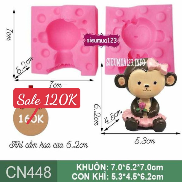 KÍCH THƯỚC KHUÔN SILICON HÌNH CON KHỈ CẦM HOA