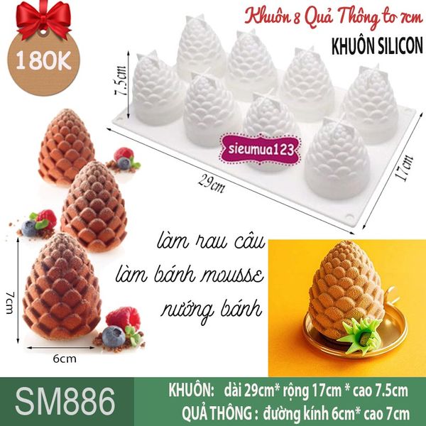 KHUÔN SILICON LÀM BÁNH MOUSSE 8 QUẢ THÔNG 7CM