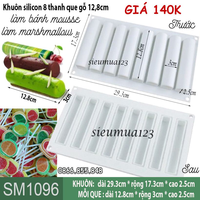 KHUÔN SILICON BÁNH MOUSSE 8 THANH QUE GỖ DÀI 12.8CM