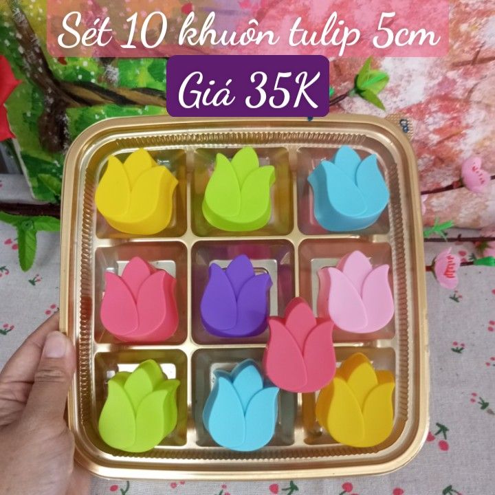 Sét 10 khuôn silicon hoa tulip 5cm ( SM1895 )