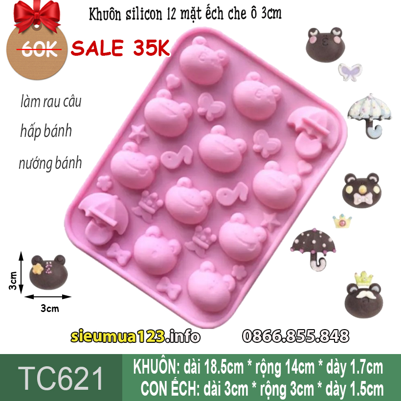 Khuôn silicon 12 con ếch che ô 3cm ( TC621 )