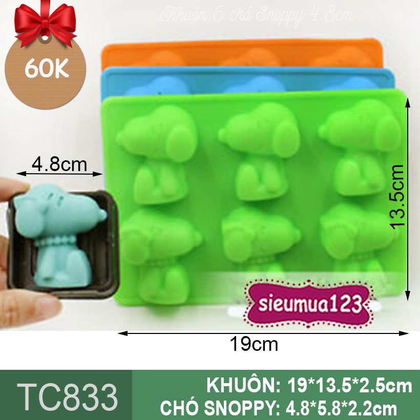 KHUÔN BÁNH SILICON 6 CHÚ CHÓ SNOOPY ( TC833 )