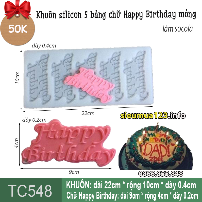 Gồm 5 bảng chữ birthday, mỗi bảng chữ: ngang 9cm * dọc 4cm * dày 0.2cm