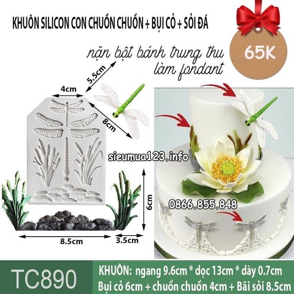 KHUÔN SILICON HÌNH CON CHUỒN CHUỒN , BỤI CỎ, SỎI ĐÁ ( TC890 )