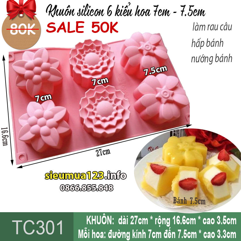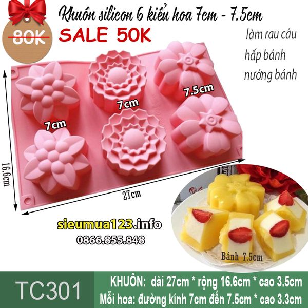 Khuôn silicon làm bánh 6 kiểu hoa mai cúc đào 7cm - 7,5cm ( TC301 )