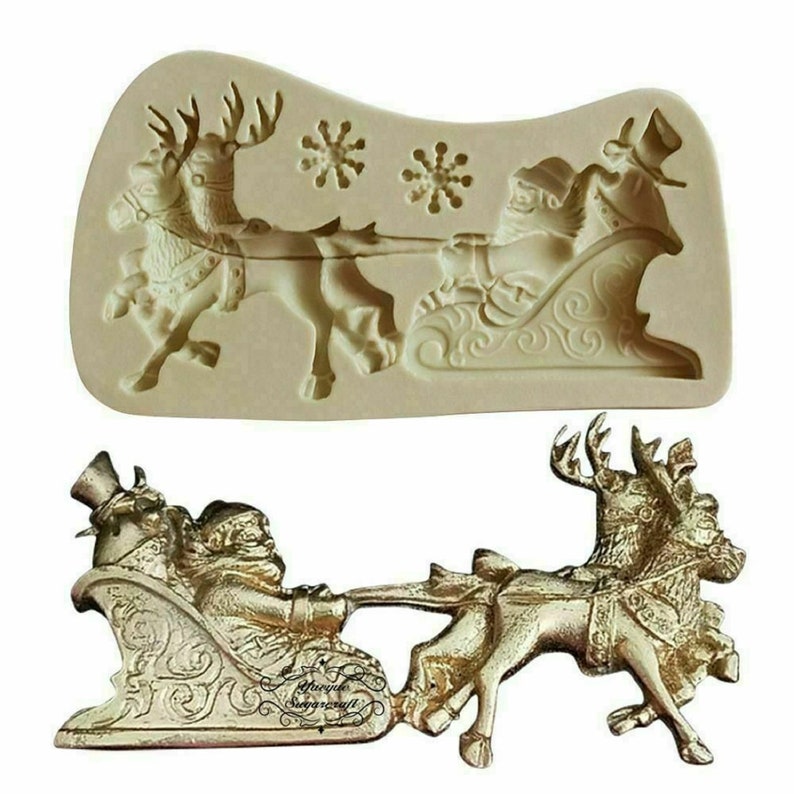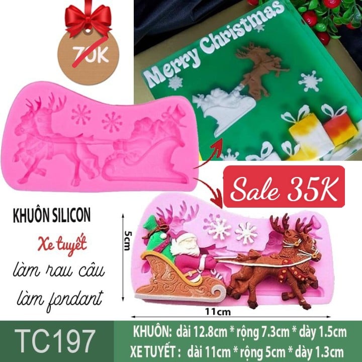 Khuôn silicon ông già Noel cưỡi xe tuần lộc 11cm ( TC197 )
